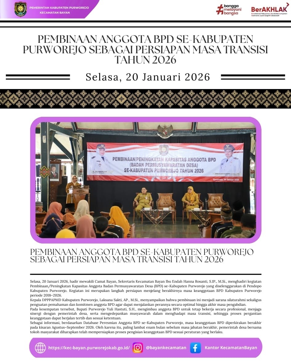 • Pembinaan Anggota BPD se-Kabupaten Purworejo sebagai Persiapan Masa Transisi Tahun 20260
