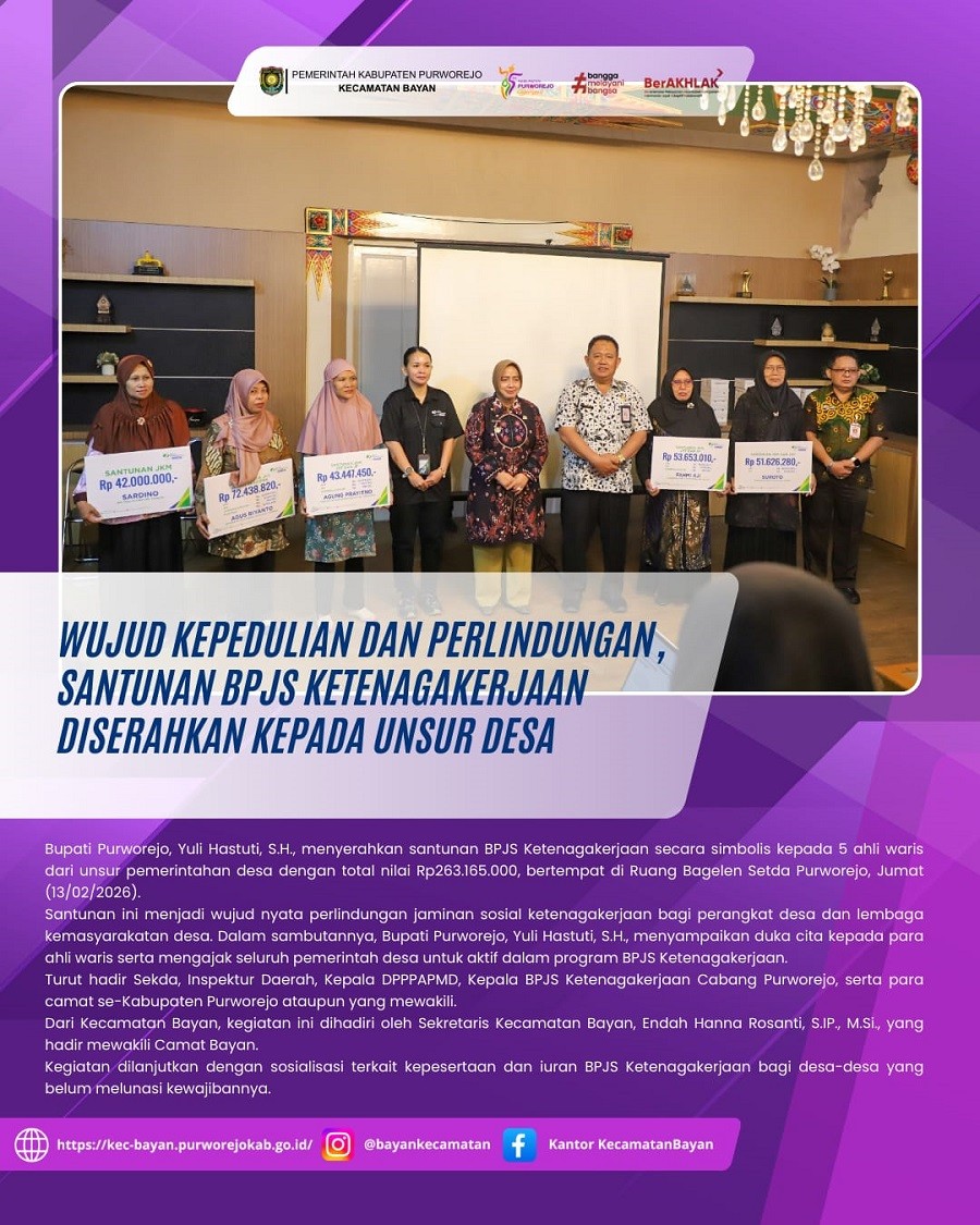 - Wujud Kepedulian dan Perlindungan, Santunan BPJS Ketenagakerjaan Diserahkan kepada Unsur Desa