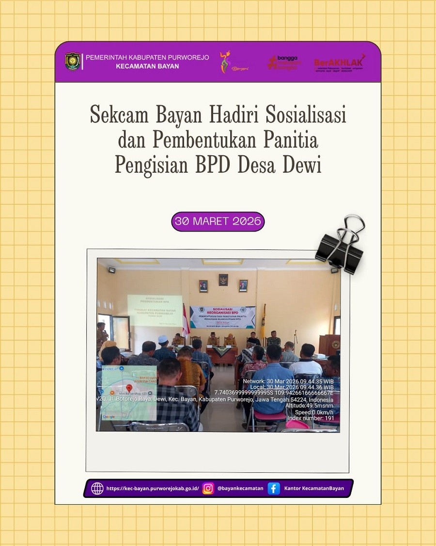 • Sekcam Bayan Hadiri Sosialisasi dan Pembentukan Panitia Pengisian BPD Desa Dewi