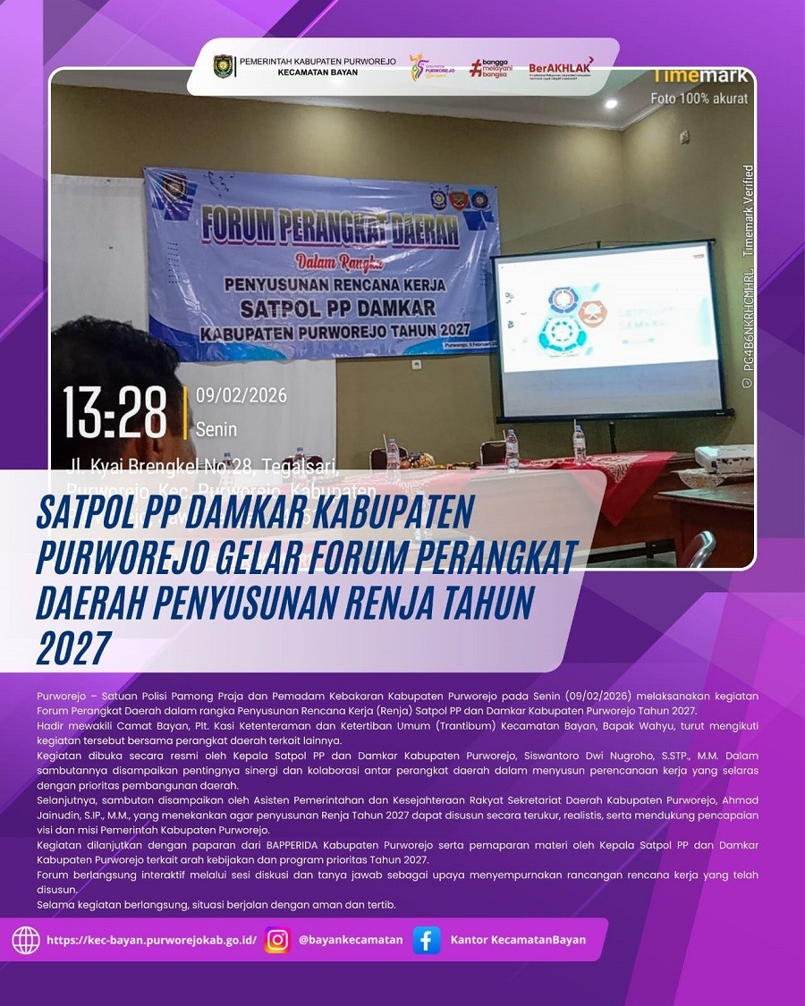 - Satpol PP Damkar Kabupaten Purworejo Gelar Forum Perangkat Daerah Penyusunan Renja Tahun 2027