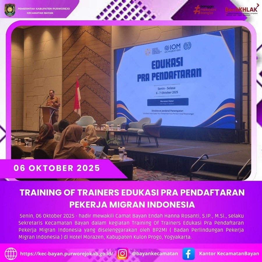 - Kecamatan Bayan menghadiri Training Of Trainers Edukasi Pra Pendaftaran Pekerja Migran Indonesia