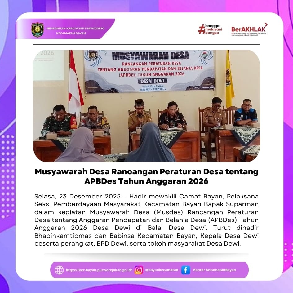 - Musyawarah Desa Rancangan Peraturan Desa tentang APBDes Tahun Anggaran 2026