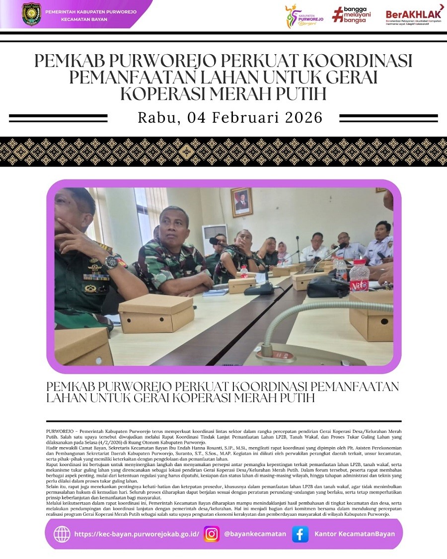 - Pemkab Purworejo Perkuat Koordinasi Pemanfaatan Lahan untuk Gerai Koperasi Merah Putih