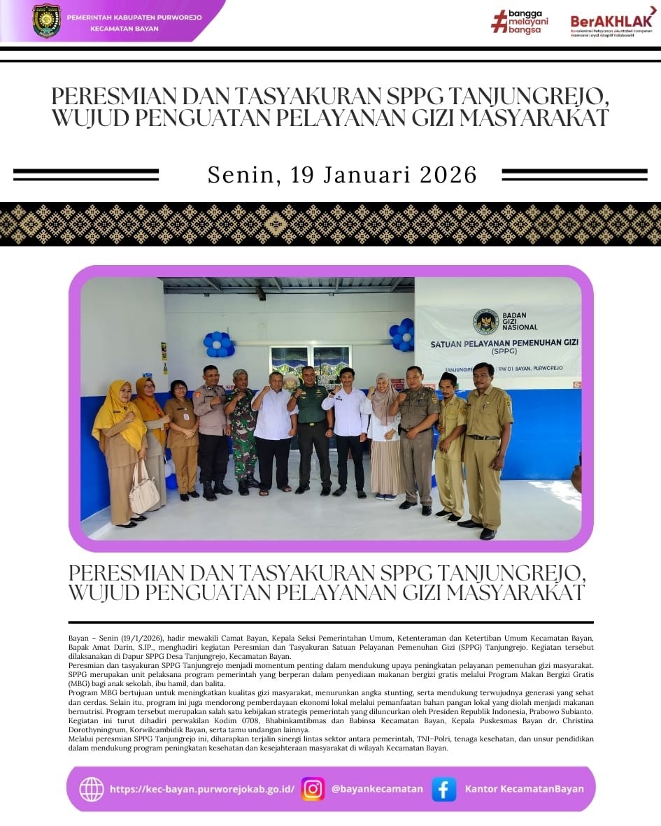 - Peresmian dan Tasyakuran SPPG Tanjungrejo, Wujud Penguatan Pelayanan Gizi Masyarakat