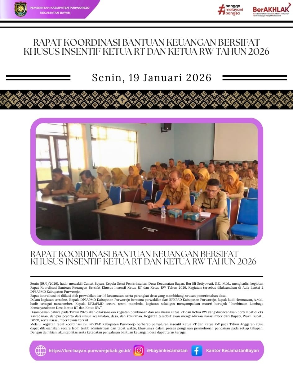 - Kecamatan Bayan Hadiri Rapat Persiapan Tarawih Silaturahim Kabupaten Purworejo 2026