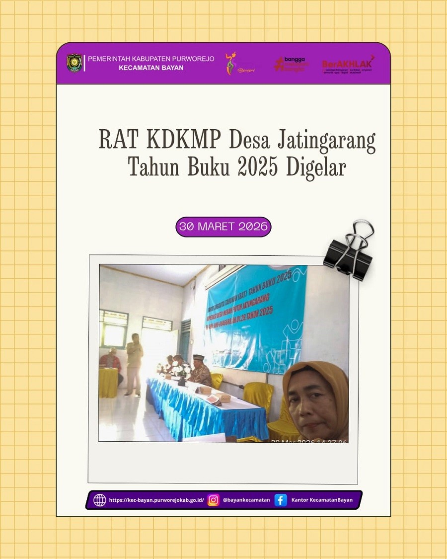 Camat Bayan yang diwakili oleh Kasi Pemberdayaan Masyarakat Kecamatan Bayan menghadiri Penyaluran Bantuan Langsung Tunai Dana Desa Tahap 6 tahun 2022 di Desa Jrakah. Penyaluran BLT yang diberikan kepada 83 KPM tersebut pada hari Selasa, 21 Juni 2022 di Balai Desa Jrakah.