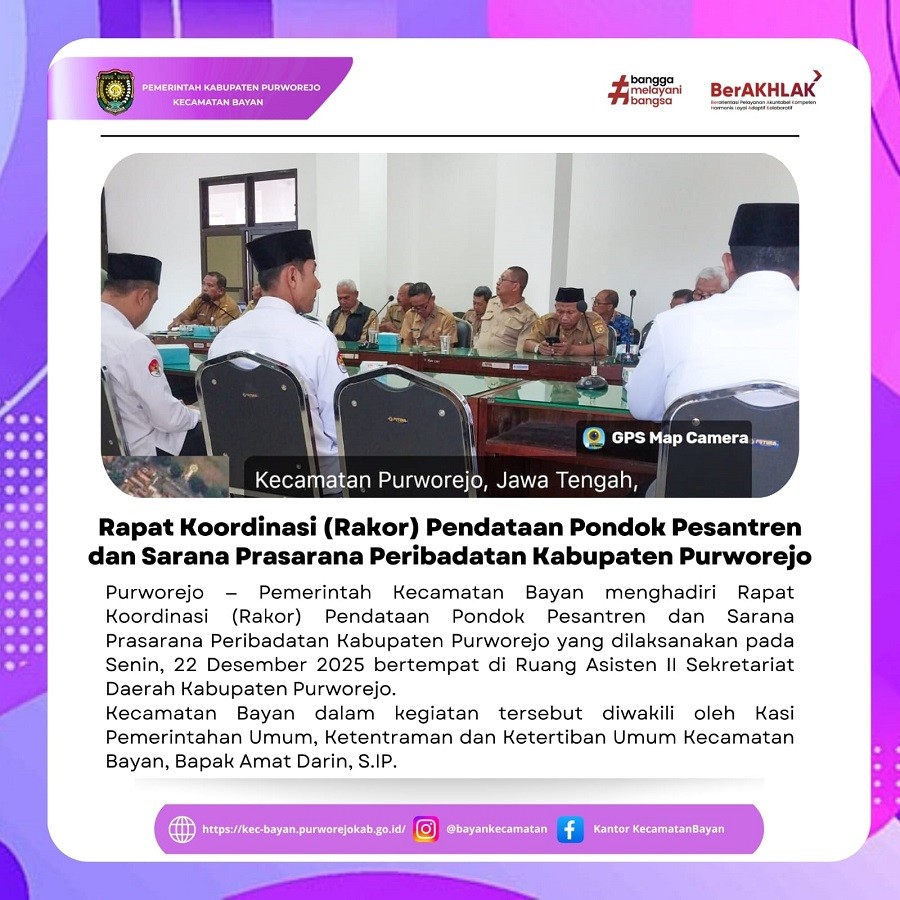 - Rapat Koordinasi (Rakor) Pendataan Pondok Pesantren dan Sarana Prasarana Peribadatan Kabupaten Purworejo