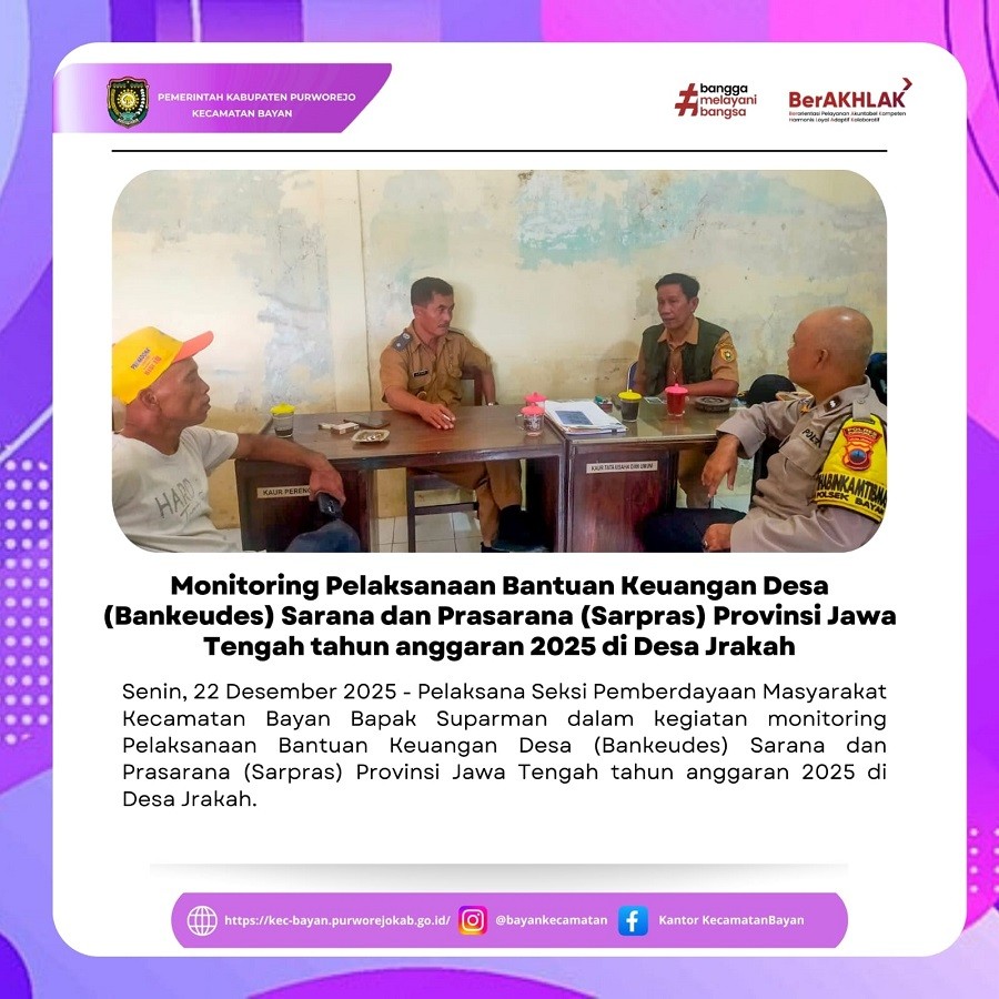 - Monitoring Pelaksanaan Bantuan Keuangan Desa (Bankeudes) Sarana dan Prasarana (Sarpras) Provinsi Jawa Tengah tahun anggaran 2025 di Desa Jrakah