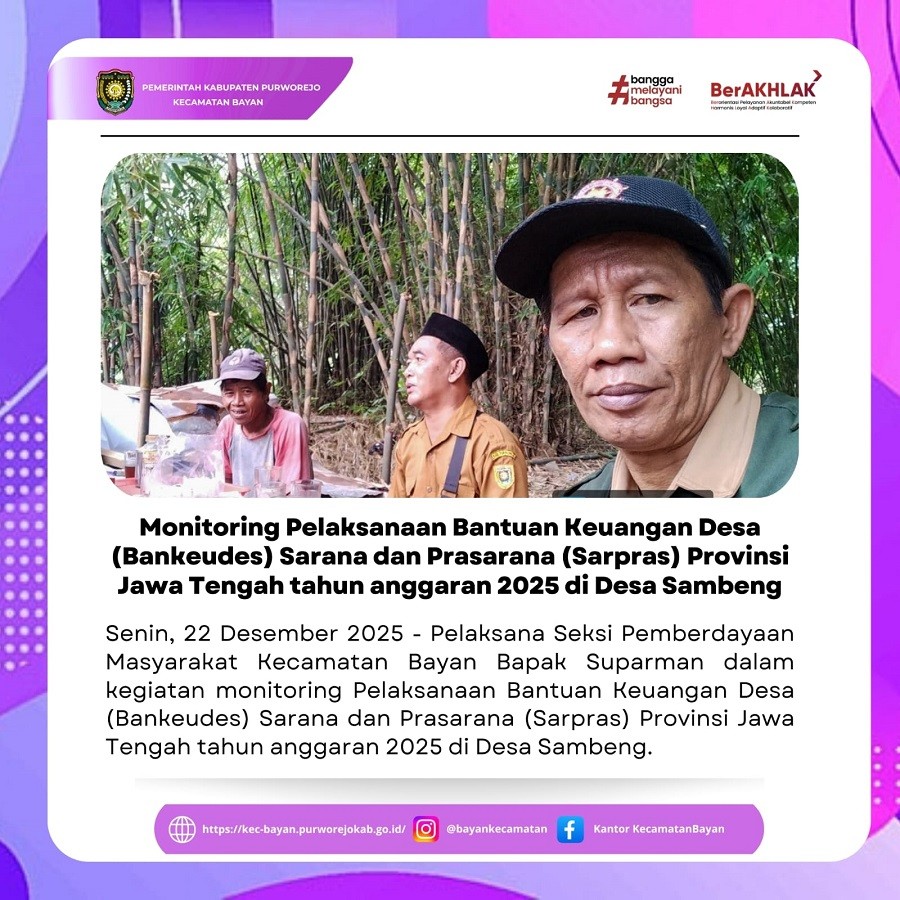 - Monitoring Pelaksanaan Bantuan Keuangan Desa (Bankeudes) Sarana dan Prasarana (Sarpras) Provinsi Jawa Tengah tahun anggaran 2025 di Desa Sambeng